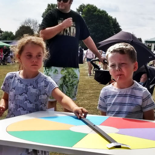 It seems it’s never too hot for chocolate roulette!!!! We had a steady stream of visitors throughout the afternoon, mostly small children (right) but also some big kids too, including the Mayor and Lady Mayoress, Bill and Angela Service (below right) and our local police (below left).